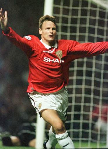 Teddy Sheringham scorer på en PANGheading etter å tidligere ha fått en scoring annulert for offside!